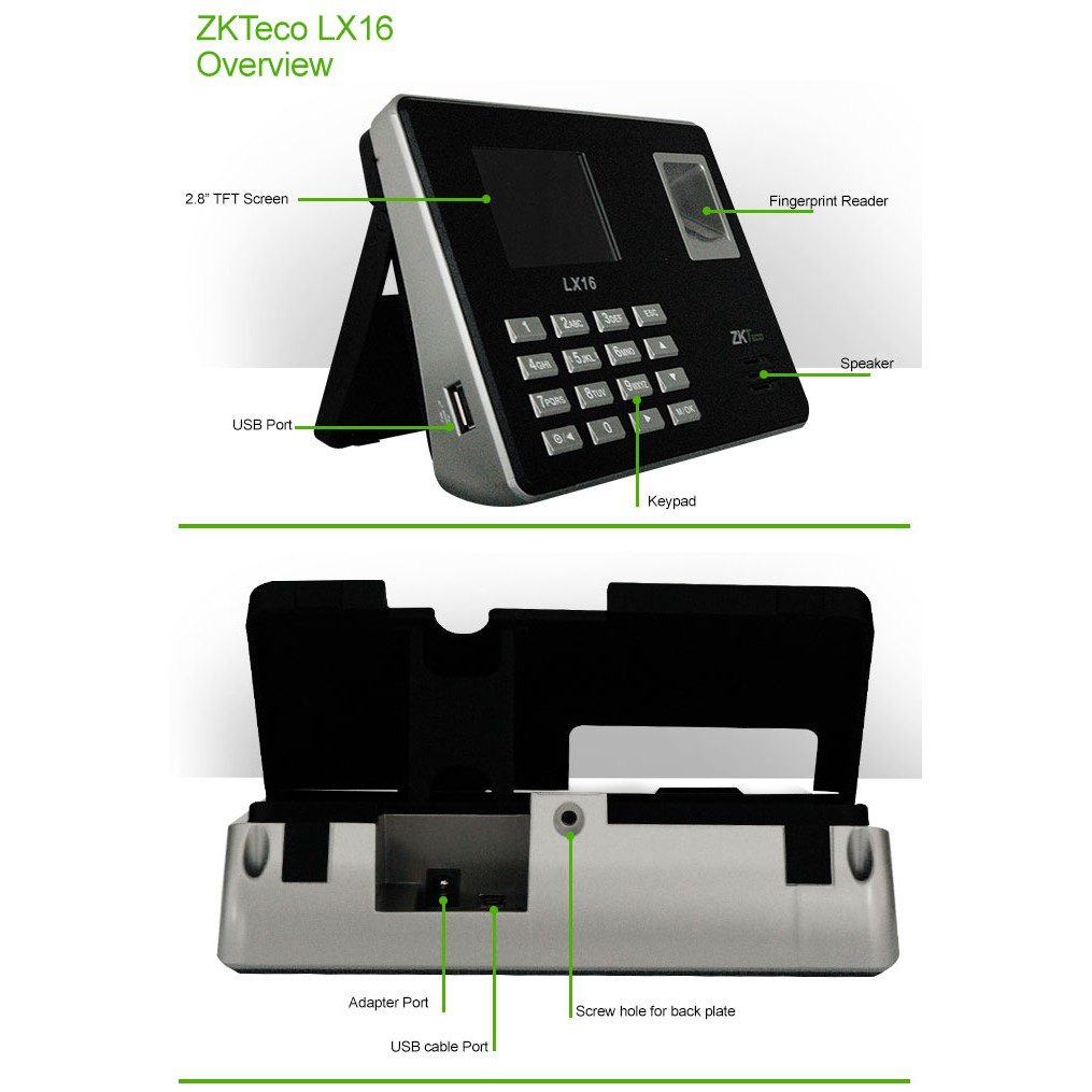 دستگاه حضور و غیاب LX16 مدل AT3012 از تولیدات شرکت ZKTeco و یکی از محصولاتی است که علاوه بر کیفیت قابل قبول و قیمت مناسب، دارای سرعت و دقت مطلوبی می باشد. قابلیت ثبت تردد از طریق اثرانگشت، امکان دریافت اطلاعات تردد از طریق فلش مموری و کابل یو اس بی، نمایشگر رنگی و منوی فارسی و تقویم شمسی، این دستگاه را جهت استفاده در مشاغلی با تعداد اعضای کمتر از ۱۰۰ نفر مناسب و کاربردی مینماید.